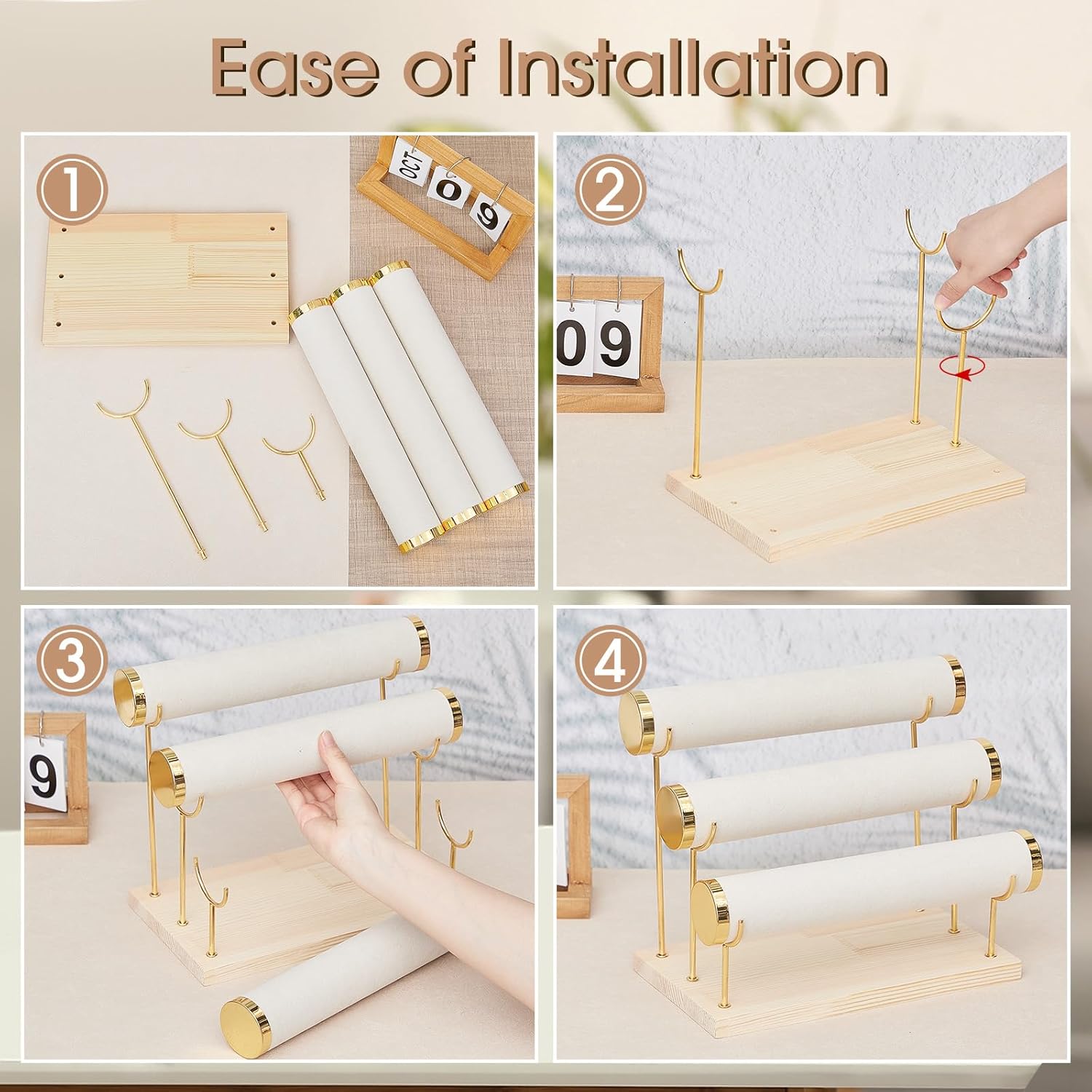 - Features That Enhance Ease of Use and Display: with 3 tiers of different heights, this jewelry holder allows for easy organize and display of your bracelets, making it a delightful addition to your room decoration, and convenient and easy for you to find the things you want, when install the metal bracket, increase the strength and use the rotating method to install it, and it is not easy to loose