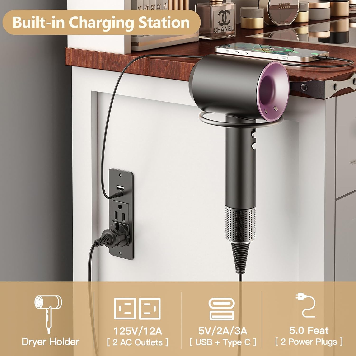 - Convenient Charging Station: We have a charging station with 1 USB and 1 type-c, 2 AC power outlets on the left side.