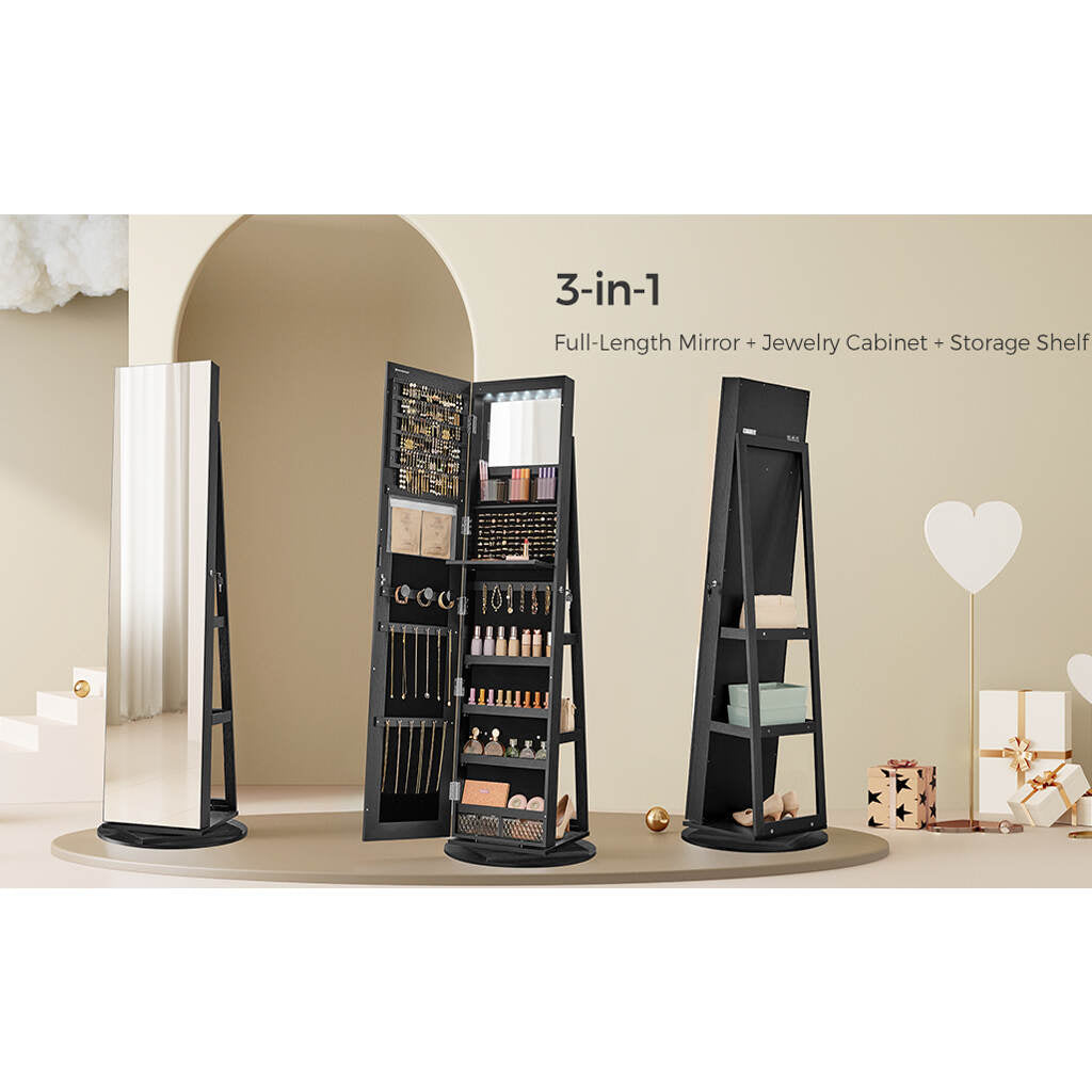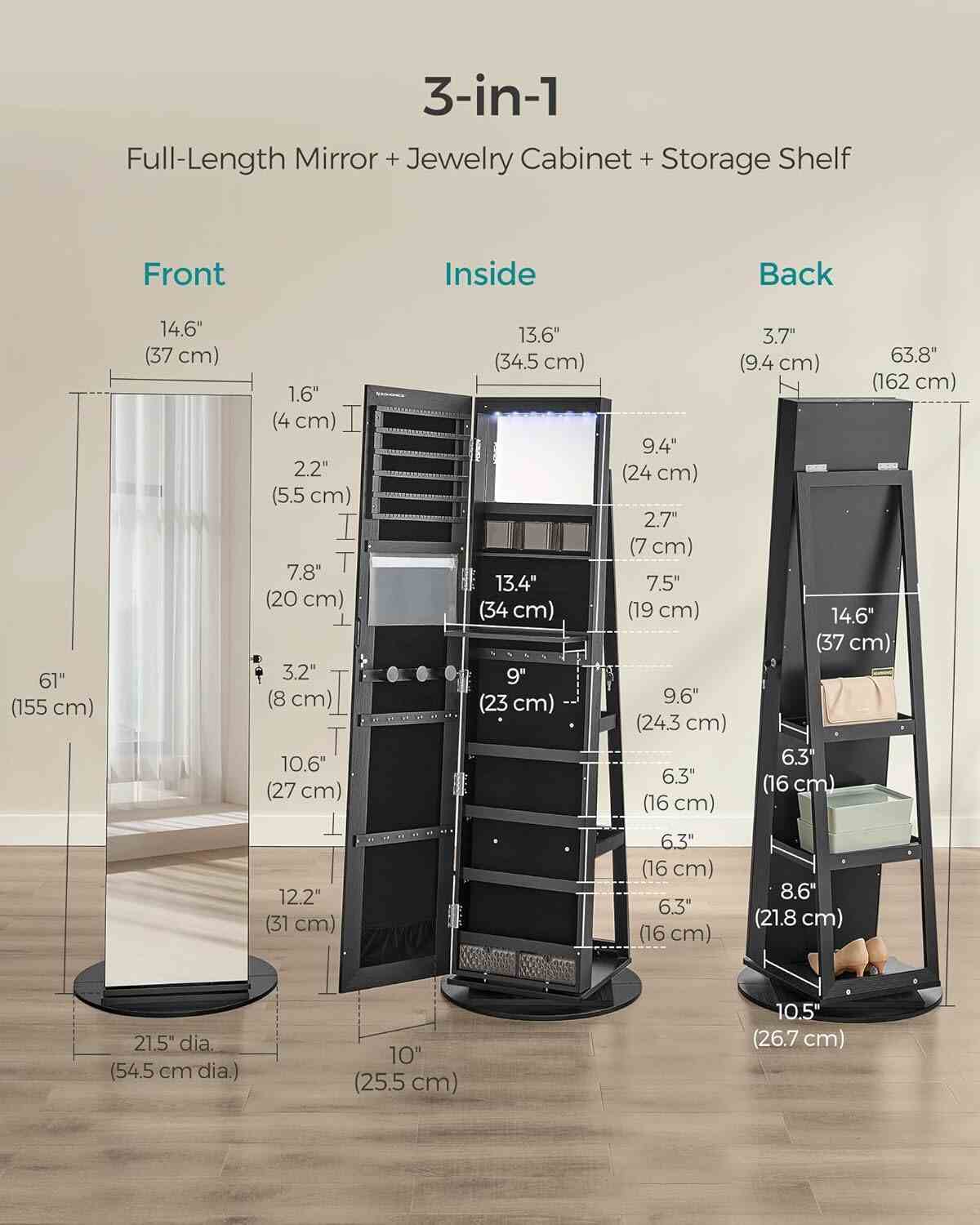 - [Frameless Mirror, Prettier] This mirror jewelry cabinet comes with a 14.6" x 61" frameless, full-length mirror that’s easy on the eyes and gives you a head-to-toe reflection, making your daily outfit checks more enjoyable