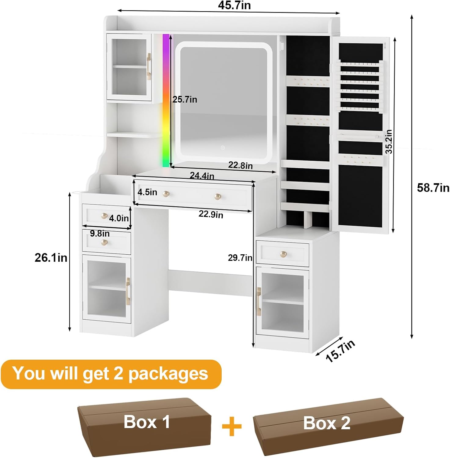 White Vanity Table with Jewelry Cabinet and RGB Lights